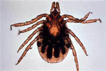 マダニが媒介.写真は幼虫段階のダニ