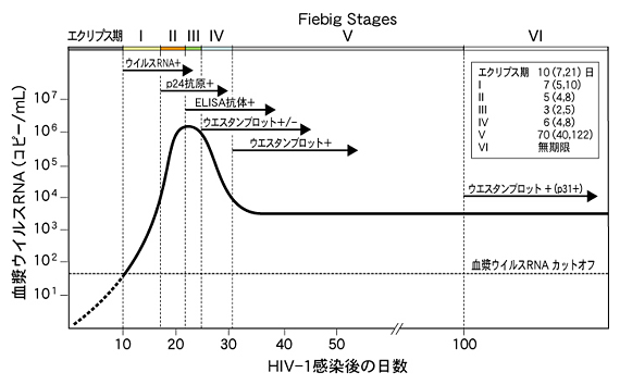定義:初期の急激なHIVウイルス血症,抗HIV抗体は検出されない.